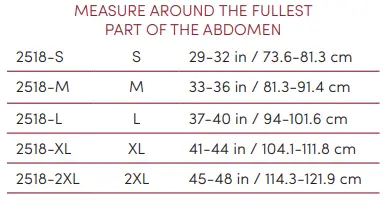 • Applies gentle full-length support to abdominal